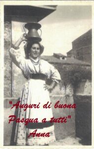 Il racconto di Anna sulla sua drammatica esperienza vissuta durante il bombardamento di Anagni del 19 marzo 1944 ha ricevuto un incredibile numero di visualizzazioni, condivisioni e apprezzamenti. Le piattaforme social hanno fatto conoscere questa storia sia qui ad Anagni che in diverse parti d’Italia e all’estero. In tanti hanno riconosciuto quella bambina della foto dopo il bombardamento e per molti è stata l’occasione per riscoprire le proprie radici geografiche e familiari. Anna è stata letteralmente subissata di telefonate di amici e parenti che da tempo vivono lontani da Anagni. Milano, Firenze e Reggio Calabria sono solo alcune delle località da dove si sono fatte vive queste persone, un’altra testimonianza , del tutto inaspettata, è giunta dalle lontane Americhe. Anna davvero felice e commossa da questa ondata di interesse e di affetto ci ha pregato di ringraziare e porgere gli auguri di una serena Pasqua a tutti gli amici, parenti e conoscenti, attraverso il nost canale social e ha voluto farlo con un’altra sua foto, questa volta, da ragazza orgogliosa delle proprie origini, nel tradizionale abito ciociaro. Agli auguri di Anna si aggiungono ovviamente quelli di tutta la redazione di Radio Hernica.