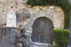 I nostri ascoltatori di più lunga militanza ricorderanno che il nostro primo sito trasmittente era situato in un angusto locale all’ultimo piano di un palazzo in Piazza Dante. A poco più di cento metri in linea d’aria, in Piazza Innocenzo III, dimorava e lavorava il più illustre dei nostri ascoltatori: quel Tommaso Gismondi che alcuni anni prima, dopo quasi mezzo secolo di peregrinazioni, da artista affermato a livello mondiale, aveva stabilito all’ombra della cattedrale il suo atelier. Gran parte della programmazione era in diretta con la messa in onda di notiziari, commenti, tavole rotonde e le immancabili dediche.