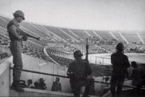 Sul piano sportivo quasi non ci fu gara: i tennisti italiani si portarono subito sul 2-0 e una vittoria nel doppio avrebbe consentito all’Italia di arrivare al 3-0 e vincere il trofeo. Il 18 dicembre 1976 Adriano Panatta e Paolo Bertolucci affrontarono Patricio Cornejo e Jaime Fillol in una lunghissima e combattuta partita vinta al quarto set dagli atleti italiani. Poco prima dell’inizio dell’incontro Adriano Panatta ebbe l’idea di sostituire la tradizionale polo bianca indossata dai tennisti dell’epoca con una maglietta rossa simboleggiante il sangue versato dalla dittatura militare. Bertolucci, sia pur meno convinto del suo compagno, concordò con questa idea e l’incontro passò alla storia come quello delle “magliette rosse” ed ebbe un grande impatto mediatico anche al di fuori del mondo dello sport ricordando a tutti il carattere sanguinario di quella dittatura. Un piccolo gesto di grande impatto che non servì certo a rovesciare Pinochet ma che contribuì, insieme a tanti altri piccoli gesti, a tenere viva l’attenzione dell’opinione pubblica internazionale sul dramma umano e politico che si stava consumando in quegli anni in Cile. Con buona pace di quelli che si dicono stanchi del “politicamente corretto”, certi gesti in certe occasioni sono importanti e fanno la differenza tra senso di responsabilità e ignavia. Negli anni 70 questo sembrava una cosa normale e scontata, a quasi mezzo secolo di distanza, triste constatarlo, non è più cosi.