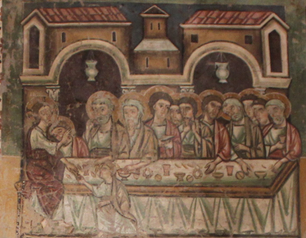 L’ultima cena è forse l’episodio più conosciuto del nuovo testamento. L’annuncio del prossimo tradimento di Giuda e l’istituzione dell’Eucaristia sono i due momenti clou della cena sulla cui interpretazione si dibatte da un paio di millenni. L’episodio si presta in modo perfetto alla rappresentazione iconografica e i più grandi pittori di ogni epoca vi si sono cimentati. Il Cenacolo o Ultima cena di Leonardo da Vinci, realizzato alla fine del 1400 presso il convento di Santa Maria delle Grazie in Milano. ne è l’esempio più conosciuto. Quasi tre secoli prima  un ignoto maestro si era cimentato in un’opera  altrettanto complessa presso un edificio forse meno conosciuto, ma non per questo meno importante dell’Italia centrale: la chiesa di San Pietro in Vineis ubicata  in mezzo ai campi, poco al di fuori delle antiche mura che circondano Anagni. L’ultima cena è solo uno degli episodi del ciclo di affreschi che abbellisce il complesso monastico e in contrasto con l’iconografia dei secoli successivi Gesù non si trova al centro della scena ma a sinistra come capotavola.  Il nome dell’artista è e rimarrà sconosciuto ma non ci sono dubbi sul committente: Rinaldo dei Conti di Segni, Papa Alessandro IV, nato ad Anagni nel 1199 e che da neo eletto pontefice vuole in questo modo onorare le consorelle di Santa Chiara, quelle Clarisse alle quali ha donato la chiesa dedicata all’apostolo San Pietro e le sue pertinenze, dopo aver canonizzato nella cattedrale cittadina la fondatrice dell’Ordine.