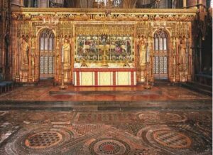 Il sito dell’Abbazia racconta cosi questa storia: “He travelled to Italy to be confirmed as Abbot, probably at Anagni cathedral near Rome, which houses the finest collection of cosmati work in Italy. He compiled the Abbey Customary (rules and regulations for the monastery) and was Treasurer of England, undertaking diplomatic missions abroad for the king. He is best known for bringing workmen and precious marbles from Rome to make up the magnificent pavement in Henry III’s new Gothic church”.