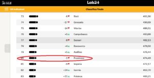 Nella nostra regione il trend negativo non riguarda solo Frosinone. Roma si colloca al 35° posto perdendo 4 posizioni, Rieti perde 6 posizioni e finisce al 73° posto. Crollo verticale di Viterbo  che perdendo ben 14 posizioni si ritrova al 75° posto. Unica provincia messa peggio della nostra è quella di Latina che  scende di  7 posti e si ritrova al n. 87 della graduatoria nazionale.