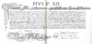 Il 1945 è anno di celebrazioni. Mentre nel nord della penisola la guerra è ancora in corso, il primo febbraio presso il Cinema Margherita si svolge il primo concerto celebrativo del trentesimo anniversario della ricostituzione della Schola Cantorum e l’istituzione del Gruppo Corale. Il 23 marzo Pio XII su indicazione del Vescovo Adinolfi nomina Paolo Davoli Cavaliere dell’Ordine di San Silvestro Papa una delle più alte onorificenze pontificie. Nella lettera di nomina viene ricordata in termini lusinghieri l’attività trentennale del maestro: “ Ci dice inoltre il tuo medesimo Ordinario (rif. al Vescovo Adinolfi) che sei benemerito della sua diocesi perché hai costituito una “Schola Cantorum” e l’hai diretta egregiamente, la quale istituzione non si può negare quanto sia opportuna e utile a promuovere il culto Divino”. Nel corso dell’anno si terranno altri concerti ma quello più memorabile è quello del 10 maggio quando presso il Pontificio Collegio Leoniano, che proprio in quei mesi riprende a pieno ritmo la sua attività educativa dopo le vicende belliche, l’ensemble si esibisce davanti a Lorenzo Perosi che a un certo punto del concerto, invitato dal pubblico presente, dirige personalmente il coro in una sua composizione. Negli anni successivi gli impegni del gruppo si moltiplicano e il Il primo ottobre 1949 il Gruppo Corale è ancora in radio. A partire da questa data la Radio Vaticana trasmette in onde medie e corte i “dialoghi” preparatori all’anno santo 1950 di Padre Venturi e i pezzi eseguiti dal Gruppo Corale di Anagni fanno da colonna sonora della trasmissione. Il 29 ottobre 1949 presso la Sala Palatina di Castel Sant’Angelo il gruppo è impegnato in un concerto in collaborazione con l’orchestra da camera della RAI diretta dal trentaseienne Carlo Maria Giulini che si va affermando come una delle figure direttoriali di rilievo della scena musicale italiana della seconda parte del 900. Sono di quel periodo le registrazioni di ben 90 canti di musica sacra, profana e popolare per la Radio Vaticana. Le sei sessioni di registrazione si svolgono presso l’aula magna del Pontificio Collegio Leoniano dove viene incisa, sempre in quei giorni, anche la colonna sonora del documentario di Rodolfo Pizzi “Anagni città dei Papi”.