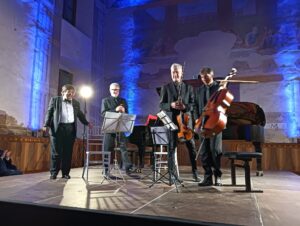 La seconda esecuzione della serata ha visto invece come assoluto protagonista IL NUOVO TRIO ITALIANO D’ARCHI che, rifondato nella sua formazione attuale nel 2018, ha raccolto l’eredità e il nome da una precedente prestigiosa esperienza di ensemble avviata nel 2004. Formato da prime parti dell’Orchestra Nazionale della RAI di Torino, il gruppo affronta un repertorio piuttosto ampio che spazia tra il classicismo e il secondo 900. In questa occasione il gruppo ha riproposto la sua collaudata esecuzione del “Trio per violino, viola e violoncello” composto nel 1985 da Alfred Schnikkte compositore russo-sovietico ma di formazione viennese. Fondamentali i suoi studi giovanili nella capitale austriaca tra il 1946 e il 1948 (dove ritornò da insegnante nel 1990), prima di approdare al Conservatorio di Mosca. Al pari di altri artisti giudicati poco convenzionali della sua epoca, Schnikkte subì non poche pressioni e ostracismi dalla nomenklatura culturale di regime e dalle autorità sovietiche che in più occasioni gli impedirono di andare all’estero per promuovere la sua musica. Mutata con Gorbaciov la situazione politica dell’URSS, il compositore ebbe la possibilità di far conoscere il suo lavoro anche in occidente. Il trio per archi commissionatogli per commemorare il centenario della nascita di Alan Berg è del 1985 e ne ricorda lo stile compositivo. In questa composizione della durata di poco meno di mezz’ora, gli strumenti vengono sollecitati fino al limite delle possibilità fisiche, con rimandi, in omaggio e ricordo della sua formazione viennese, a Mozart, Schubert e Mahler. Da notare anche una citazione del verdiano “Va pensiero” al minuto 7.10 dell’esecuzione. La composizione non è di “facile” ascolto, la complessità della partitura esige esecutori di prim’ordine e il Nuovo Trio Italiano d’archi affronta la prova con estrema autorevolezza.