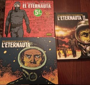 La storia dell’Eternauta, disegnata da Francisco Sòlano Lopez, venne pubblicata a puntate sul periodico “Hora Cero Suplemento Setimanal” a partire dal 4 settembra 1957 e nel 1961 venne ristampato su una testata autonoma che portava il nome del protagonista. Alcuni anni dopo Oesterheld riscrisse la sceneggiatura in chiave più politica accentuando i riferimenti alle ingerenze statunitensi in America Latina che sarebbero culminate con l’instaurazione di regimi militar fascisti in quasi tutto il continente.