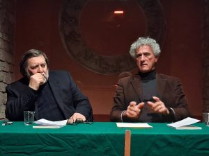 Il titolo dell’opera, “La Storia al contrario” (Salerno Editrice) , non sappiamo se per scelta provocatoria o casualità, è assonante con quello di un’altra pubblicazione che ha avuto recente fortuna in certi ambienti, ma, chiariamo subito, le similitudini si fermano qui. Questa opera in realtà, pur essendo un “divertissement” dell’autore è estremamente seria ed è una sorta di manuale che tra Storia “vera” , ucronia e leggende, che a forza di essere ripetute e studiate, per molti sono diventate realtà, cerca di fornire al lettore qualche strumento pratico per districarsi tra il vero e il verosimile, spiegando come la Storia possa essere manipolata e piegata a fini tutt’altro che etici e le percezioni del reale distorte ricorrendo a sottili artifizi come la citazione di passi scritti fuori contesto e note a piè di pagina che diano l’impressione di una accurata ricerca storiografica. Il libro si articola in quattro capitoli, simili ai movimenti di una composizione sinfonica, come ama ripetere l’autore. Ogni movimento sviluppa un tema basato su personaggi immaginari che sono passati alla Storia, avvenimenti che vuoi per il caso vuoi per calcoli errati dei protagonisti, hanno avuto un certo esito assegnando ai perdenti il ruolo di “cattivi”, leggende che potrebbero essere nate per un motivo più che plausibile che in realtà non ha fondamento e la casualità di un ritrovamento araldico che potrebbe far pensare a legami antichi tra il vecchio e il nuovo mondo in realtà inesistenti. Abbiamo registrato integralmente l’intera conferenza e per una migliore fruizione dei contenuti abbiamo diviso il tutto in quattro parti, una per ogni capitolo. La durata complessiva è di circa un’ora.